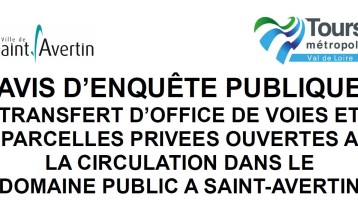 ENQUÊTE PUBLIQUETransfert d’office de voies et parcelles privées ouvertes à la circulation dans le domaine public a Saint-AvertinPar arrêté, le Président de Tours Métropole...