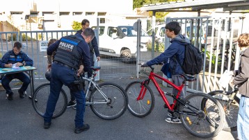 Vérification des cycles des collégiens par la police - La Ville assure la sécurité des élèves