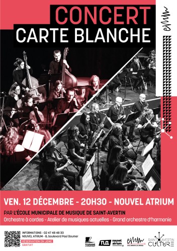 Attendu chaque année par les mélomanes avertis, le concert Carte Blanche des élèves de l’École Municipale de Musique de Saint-Avertin leur permet de se livrer à quelques expérimentations, en revisitant avec ingéniosité certaines grandes œuvres intemporelles.