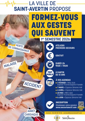 Afin de poursuivre les actions de sensibilisation, et de former le plus grand nombre de Saint-Avertinois, la municipalité renouvelle ce dispositif pour l’année 2026 avec la mise en place de nouveaux créneaux de formation.