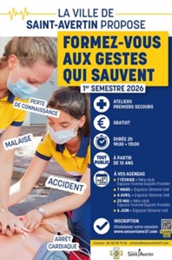 Afin de poursuivre les actions de sensibilisation, et de former le plus grand nombre de Saint-Avertinois, la municipalité renouvelle ce dispositif pour l’année 2026 avec la mise en place de nouveaux créneaux de formation.
