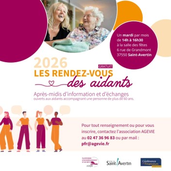 En partenariat avec l’association AGEVIE, le CCAS de Saint-Avertin met en place des rendez-vous destinés à soutenir ces aidants et à prévenir leur isolement. Ces temps d’information et d’échanges sont animés par des professionnels ayant une expertise sur la question des aidants.