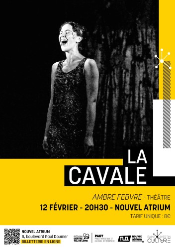 Depuis qu’elle est petite, cette image d’elle fuyant cette horde lui revient à l’esprit et la paralyse. Elle ignore s’il s’agit d’un souvenir, d’un rêve ou d’une menace... Une nuit, elle décide d’affronter ce qu’elle nomme "La Cavale", comme le nom du spectacle seul en scène qui sera incarné avec force et brio au Nouvel Atrium par la comédienne d’origine saint-avertinoise Ambre Febvre.