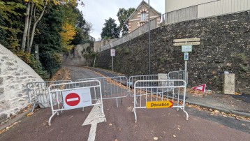 Circulation interdite aux piétions et à tous les véhicules au début de la rue de Léon Brulon